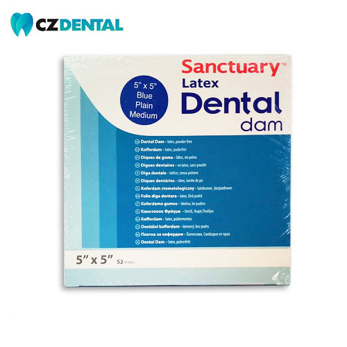La goma dique Sanctuary azul está especialmente diseñada para ser resistente, con alta tolerancia a la rotura, con el fin de permitir una fácil fijación mediante grapas o clamps.